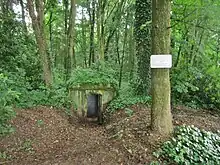 Un dolmen haut de 2 mètres, composé de 5 pierres verticales supportant une table de 5 pieds de longueur sur 4 de largeur, situé au sud de la route d'Hennebont à Vannes, est signalé en 1863[21].