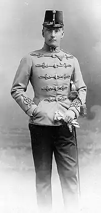 Hussard autrichien (1905), l'uniforme fermé avec cinq nœuds brandebourgs.