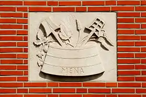 L'inscription « Mena Brouwerij 1897-1933 » au sommet de la façade.