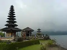 Vue du temple hindou Ulun Danu Bratan sur les rives du lac Bratan.