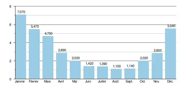 Ainsi les QIX 2 et QIX 5 valent respectivement 51 et 80 m3/s. Le QIX 10 est de 100 m3/s, le QIX 20 de 120 m3/s, le QIX 50 de 140 m3/s, tandis que le QIX 100 n'a pas été calculé, vu la période d'observation de 23 ans.