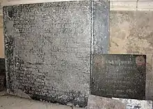 - Barthélemy, "Recueil des pierres tombales…", page 147, pierre tombale de Jehanne Daoust, femme de Guillaume Lignage, 1595.