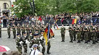 Des unités allemandes et françaises de la brigade participent au défilé sur les Champs-Élysées