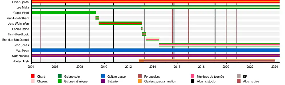 - Oliver Sykes − chant, programmation, claviers (depuis 2004)