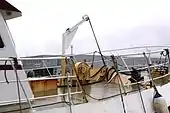 Sur un navire, un brise-lames est une tôle additionnelle généralement en forme de « V » montée sur le pont gaillard et destinée à briser les lames et les détourner lorsqu'elles montent sur le pont[22]. Ce brise-lames a un rôle de déflecteur, il améliore la sécurité des marins, la protection de la cargaison et, sur les petits navires, facilite la conduite de la passerelle.