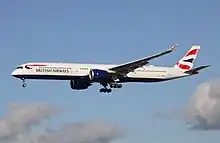 Le , British Airways a reçu le premier Airbus A350-1000 de ses 18 en commande à sa base de Londres-Heathrow. C'est le premier appareil de sa flotte à avoir une nouvelle classe affaires dénommée Club Suite disposant de portes individuelles et d'un accès couloir pour chaque siège. La compagnie a initialement opéré l'A350 sur sa ligne Londres-Madrid pour familiarisation de ses équipages, puis a positionné l'appareil sur les lignes Londres-Dubai à partir de septembre, Londres-Toronto à partir de novembre, Londres-Tel-Aviv à partir de décembre et Londres-Bangalore à partir de janvier 2020[9].