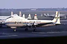 Lors de sa création, les Bristol Britannia assurent la plupart des vols charters longue distance de BUA[nb 5],[23].