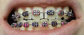 - Broches linguales (en) : Apposées en arrière des dents, elles sont une alternative cosmétique permettant de dissimuler l'appareillage à autrui.
