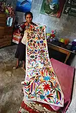 Il est prouvé que la broderie existe à l'époque préhispanique en Mésoamérique, mais elle subit un changement radical avec l'introduction des techniques et des dessins européens[2]. Elle est toujours traditionnellement le travail des femmes, les filles apprenant de leurs mères[6]. Aujourd'hui encore, la plupart du travail se fait au sein des familles individuelles, mais il existe des coopératives de femmes qui travaillent ensemble pour produire et promouvoir leurs produits[1].