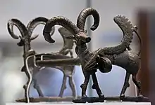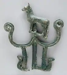 Parmi les bronzes les plus caractéristiques se trouve une gamme d’objets avec une douille creuse ou un anneau, conçus pour être fixés au sommet d’une perche ou de tout autre support vertical, souvent à l’aide d’un accessoire intermédiaire indépendant. Ils peuvent avoir été utilisés avec d'autres éléments disparus[6]. Si leur fonction reste sujet à controverse, il s'agit sans doute d'emblèmes personnels de guerriers [7]. Comparées à des motifs plus récents, les sculptures animales se distinguent par leur naturalisme, en particulier le groupe des bouquetins[8]. Il existe également des tubes antropomorphes, dont certaines forment une tête de Janus[9]