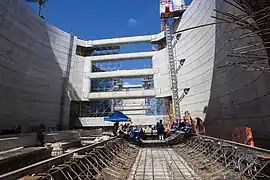 Elle dispose de deux accès équipés d'escaliers mécaniques et d'ascenseurs. La mezzanine du niveau -1, dispose de la billetterie, du contrôle d'accès et des distributions pour rejoindre le quai central, équipé de portes palières, situé au niveau -2[2].