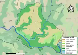 L'occupation des sols de la commune, telle qu'elle ressort de la base de données européenne d’occupation biophysique des sols Corine Land Cover (CLC), est marquée par l'importance des forêts et milieux semi-naturels (51,8 % en 2018), une proportion sensiblement équivalente à celle de 1990 (51,5 %). La répartition détaillée en 2018 est la suivante : forêts (46,3 %), zones agricoles hétérogènes (40,4 %), prairies (7,9 %), milieux à végétation arbustive et/ou herbacée (5,5 %)[31].