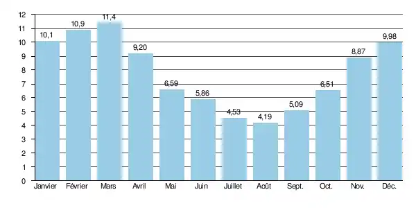 | Débit moyen | 7,75 m3/s (Payerne, Caserne d'aviation 1920 - 2013) |