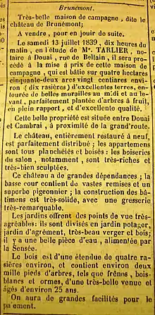 En 1774, M. Casimir Joseph de Wavrechin, échevin de Douai, achète le château et l'ensemble des propriétés attenantes au Comte de Belloy pour la somme de 150 000 livres tournois. Le château menaçait ruine mais le parc était important. À ce titre, le village porte encore trace de ce dernier.