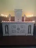 • Autel du Sacré Cœur en bois peint. Autel décoré de deux statues d'ange (Classé au monument historique)
