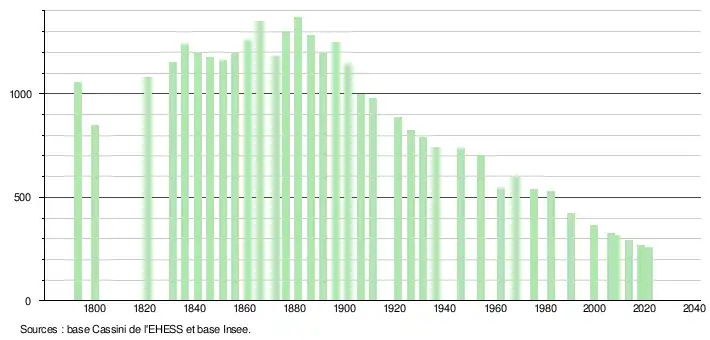 - Fiches Insee - Populations légales de la commune pour les années 2006, 2007, 2008, 2009, 2010, 2011, 2012, 2013, 2014, 2015, 2016, 2017, 2018, 2019, 2020 et 2021.