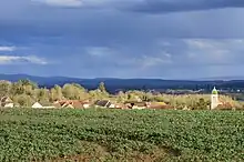 L'occupation des sols de la commune, telle qu'elle ressort de la base de données européenne d’occupation biophysique des sols Corine Land Cover (CLC), est marquée par l'importance des territoires agricoles (61 % en 2018), néanmoins en diminution par rapport à 1990 (67,6 %). La répartition détaillée en 2018 est la suivante : forêts (32,4 %), terres arables (31 %), prairies (20,5 %), zones agricoles hétérogènes (9,5 %), zones urbanisées (6,5 %)[13]. L'évolution de l’occupation des sols de la commune et de ses infrastructures peut être observée sur les différentes représentations cartographiques du territoire : la carte de Cassini (XVIIIe siècle), la carte d'état-major (1820-1866) et les cartes ou photos aériennes de l'IGN pour la période actuelle (1950 à aujourd'hui)[Carte 1].