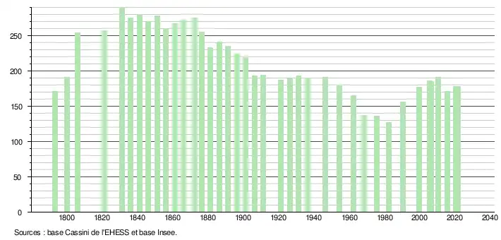 - Fiches Insee - Populations légales de la commune pour les années 2006, 2007, 2008, 2009, 2010, 2011, 2012, 2013, 2014, 2015, 2016, 2017, 2018, 2019, 2020 et 2021.