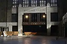 La décoration est du style XVIIe siècle. Le hall principal fait 69 m de long, 21 m de large et 17,8 m de hauteur (19,4 m aux extrémités en forme de dôme). Le bâtiment comprenait différents espaces à louer, un restaurant, un café, un bureau de télégraphe de la Western Union et une fontaine à soda, soit toutes les commodités d'une gare standard. Curtiss Street est directement en dessous du hall, mais a été fermée depuis la fin des années 1980 pour des raisons de sécurité.