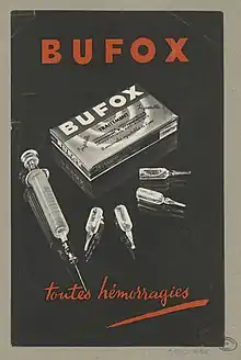 En France, un hémostatique à base de Bufotoxine était commercialisé sous le nom de Bufox jusque dans les années 1960[4].