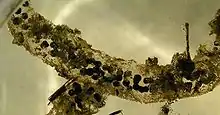 - Le venin endogène des crapauds, souvent très toxique[16],[17],[18] (parfois mortellement toxique pour de nombreux animaux pesant jusqu'à plusieurs dizaines de kilos) est produit par des glandes muqueuses spécialisées, disposées en amas (glandes granuleuses) à ou isolées et dispersées. Les glandes parotoïdes situées derrière les yeux sur les côtés de la tête en produisent habituellement le plus[19].
