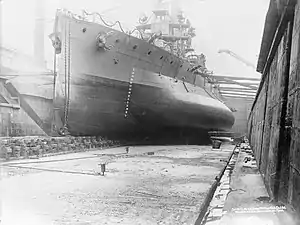 La marine américaine construit également des navires avec des bulbes anti-torpilles, comme le Pennsylvania, mis en service en 1916[1].