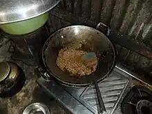 Le mélange s'effectue de plusieurs façons, le plus souvent broyé à l'aide d'un mortier et d'un pilon, aujourd'hui à l'aide d'un blender ou d'un robot de cuisine. Ce mélange est essentiellement utilisé en friture et déposé dans une huile de cuisson chaude avant les ingrédients principaux.
