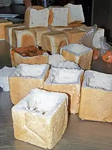 - (en) Cet article est partiellement ou en totalité issu de l’article de Wikipédia en anglais intitulé « Bunny chow » (voir la liste des auteurs).