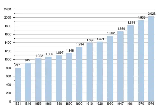 - Sources : INS, Rem. : 1831 jusqu'en 1970 = recensements, 1976 = nombre d'habitants au 31 décembre.
