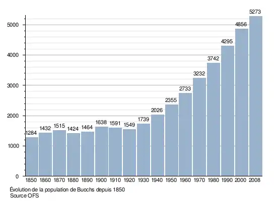 Le graphique suivant résume l'évolution de la population de Buochs entre 1850 et 2008[3] :