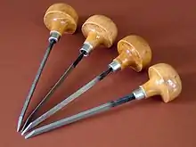 Les outils utilisés sont l'ébarboir[6], le brunissoir, la loupe et le ou les burins.