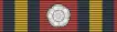 Le centre du ruban est rouge, bordé de part et d'autre de bandes bleu foncé et orangé, avec des bords bleu foncé. Le rouge et le bleu représentent les Forces du Commonwealth et l'orangé le soleil.