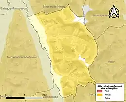 Le retrait-gonflement des sols argileux est susceptible d'engendrer des dommages importants aux bâtiments en cas d’alternance de périodes de sécheresse et de pluie[34]. 85,8 % de la superficie communale est en aléa moyen ou fort (59 % au niveau départemental et 48,5 % au niveau national)[Carte 6]. Depuis le , en application de la loi ELAN, différentes contraintes s'imposent aux vendeurs, maîtres d'ouvrages ou constructeurs de biens situés dans une zone classée en aléa moyen ou fort[Note 8],[35].