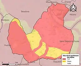 Le retrait-gonflement des sols argileux est susceptible d'engendrer des dommages importants aux bâtiments en cas d’alternance de périodes de sécheresse et de pluie. La totalité de la commune est en aléa moyen ou fort (88,8 % au niveau départemental et 48,5 % au niveau national). Sur les 1 079 bâtiments dénombrés sur la commune en 2019, 1 079 sont en aléa moyen ou fort, soit 100 %, à comparer aux 98 % au niveau départemental et 54 % au niveau national. Une cartographie de l'exposition du territoire national au retrait gonflement des sols argileux est disponible sur le site du BRGM[31],[Carte 3].