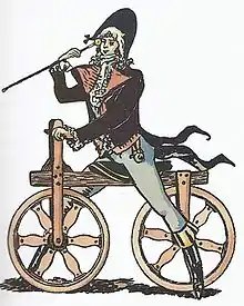 Il s’agit d’une « machine à courir » prétendument inventée en 1790 par un certain comte Mède de Sivrac (personnage imaginaire), et qui ressemble à la draisienne, laquelle a été réellement inventée vingt-sept ans plus tard par le baron allemand Karl Drais von Sauerbronn, qui fit breveter son engin en France.