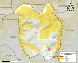 Le retrait-gonflement des sols argileux est susceptible d'engendrer des dommages importants aux bâtiments en cas d’alternance de périodes de sécheresse et de pluie. 53,7 % de la superficie communale est en aléa moyen ou fort (67,7 % au niveau départemental et 48,5 % au niveau national). Sur les 197 bâtiments dénombrés sur la commune en 2019, 124 sont en aléa moyen ou fort, soit 63 %, à comparer aux 72 % au niveau départemental et 54 % au niveau national. Une cartographie de l'exposition du territoire national au retrait gonflement des sols argileux est disponible sur le site du BRGM[18],[Carte 2].