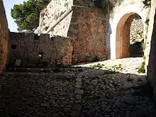 Il reste quelques ruines de la caserne et de son église voisine appelée « l’église française ». Dans l’enceinte, vers la gauche après être entré par la porte du château, se trouvent les restes de l'église catholique Saint-Marc, construite en 1604. Il ne s’agissait que d’une église catholique parmi d’autres comme celles de Saint-Jean et Sainte-Marie, pour lesquelles il ne reste plus rien de visible. Une église est encore visible qui a été construite en 1888 sur les ruines d'une autre église plus petite. Le séisme de 1953 a détruit le clocher. Autour de l'église on peut voir les ruines d'un bâtiment vénitien nommé la Chambre Gentilini d’après le nom de son propriétaire.