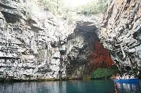 À trois kilomètres au nord de Sami, se trouve un lac souterrain, profond de 39 m, qui se visite en barque. Ses eaux turquoise communiquent par des galeries avec des gouffres situés à 15 km de là, de l'autre côté de l'île. La voûte en partie écroulée permet au ciel de se refléter dans l'eau dont la couleur change avec la position du soleil.