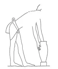 Des indications sur la fonction d'un récipient sont données par des représentations dans les tombes, les inscriptions, la forme, le type de fabrication, les restes de contenu et le contexte archéologique de la fouille. Dans les tombes, les récipients sont souvent dessinés seulement schématiquement. Néanmoins on a pu identifier la fonction des récipients dans certains cas au moyen des représentations tombales, notamment des moules à pain, des corbeilles à filer et des cruches à bière. Les formes des cruches à bière sont déterminées à partir des représentations en relief (comme celles dans le mastaba de Ti) avec des scènes de la fabrication de la bière : ce sont des vases ovoïdes, à fond rond, avec généralement une lèvre faiblement marquée au bord, grossièrement moulée, faits d'argile fortement amaigrie avec des composants organiques[40],[41].