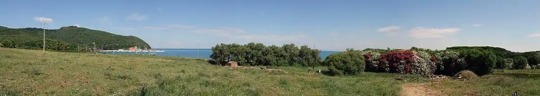 La côte des Étrusques au golfe de Baratti depuis la nécropole de San Cerbone à Populonia.