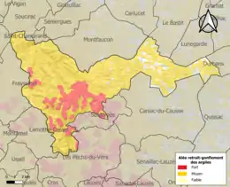 Le retrait-gonflement des sols argileux est susceptible d'engendrer des dommages importants aux bâtiments en cas d’alternance de périodes de sécheresse et de pluie. 92,9 % de la superficie communale est en aléa moyen ou fort (67,7 % au niveau départemental et 48,5 % au niveau national). Sur les 743 bâtiments dénombrés sur la commune en 2019, 685 sont en aléa moyen ou fort, soit 92 %, à comparer aux 72 % au niveau départemental et 54 % au niveau national. Une cartographie de l'exposition du territoire national au retrait gonflement des sols argileux est disponible sur le site du BRGM[21],[22].