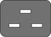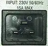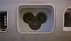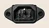 (en haut à gauche) C13 (source[1]/femelle[2]) - exemple de socle de connecteur[4] (selon la norme, c'est une prise de sortie d'appareil de type F).
