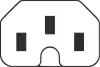 8,6 | II | 2,5 | 70 | Équipements audio, vidéo & radio domestiques et alimentations électriques à double isolation. Ce connecteur version symétrique n'est pas polarisé[9] contrairement aux connecteurs C7P/C8P. | ||