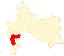 Position de Cañete (en rouge) au sein de la Région du Biobío.