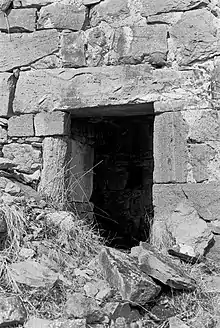 - à gauche en entrant, un regard ou une ventilation aux parois ébrasées intérieurement ;