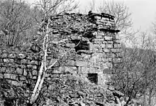 À la suite de dégradations causées par des enfants, le tiers supérieur gauche de la façade s'est effondré, mais les mensurations d'origine peuvent être restituées : hauteur parementée conservée : env. 6 m ; longueur de la façade : 7 m à la base, 5,10 m à 6 m de haut.