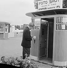 La cabine photographique comme nous l’entendons de nos jours est inventée par Anatol Josepho[4] à New York, en septembre 1925. Anatol Josepho ouvre son premier studio photo à Broadway où il mit en service trois de ces dispositifs qu’il appelle « photomaton ». Pour 25 cents, on peut alors imprimer une série de huit photos en une dizaine de minutes. On prétend qu'à eux seuls, durant les six premiers mois, ces trois appareils comptabilisent 280 000 personnes photographiées, soit environ 7500 par jour, avant d’être déployés à l’échelle nationale par la compagnie Photomaton[5]. Anatol Josepho revend ensuite son brevet[1] Photo Booth en mars 1927 pour un million de dollars à Henry Morgautheu. La même année, un investisseur britannique acheta les droits d’exploitation pour l’Europe[1]. À partir de là, le Photomaton est lancé et on voit apparaître d’autres appareils similaires des deux côtés de l’Atlantique.
