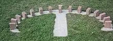- un cercle horaire gradué en heure (1 heure / 15°) avec 12 h (midi solaire) vers le nord[4] Ce cercle est placé dans un plan parallèle au plan de l'équateur, d'où le nom de cadran solaire équatorial.
