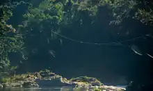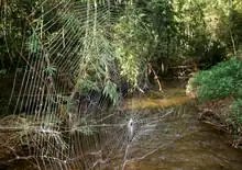 Cette araignée tisse sa toile au dessus de cours d'eau[4].
