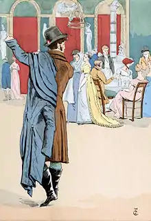 « Un escalier mène à un beau vestibule, et de là à une salle entourée de glaces et décorée de festons de fleurs artificielles. À l'extrémité s'élève une belle statue de la Vénus de Médicis. Auprès de cette statue s'ouvre une arcade donnant accès à une suite de six magnifiques pièces superbement dorées, garnies également de glaces et de lustres de cristal taillé en diamants, qui brillaient comme autant de petites cascades étincelantes. Chaque chambre était comme un foyer de lumière ; l'on y prenait des glaces ou du café. On communiquait d'une pièce à l'autre par des arcades ou des portes à deux battants ornées de glaces. Le jardin, petit, mais disposé avec art, se compose de trois allées bordées d'orangers, d'acacias et de vases de roses ; à l'extrémité s'élèvent une tour dressée sur un rocher, des temples et des ponts rustiques ; de chaque côté, de petits berceaux en labyrinthe. Une terrasse s'étend le long du boulevard, dont elle commande l'aspect ; elle est bordée de beaux vases de fleurs et se termine à chaque extrémité par des sortes d'avenues décorées de miroirs. Là, dans le cours d'une heure, l'étranger, partagé entre la surprise et l'admiration, peut voir près de trois mille femmes les plus belles et les plus distinguées de Paris, dont les joues ne sont plus désormais défigurées sous les ravages du rouge, et qui, par l'harmonie et la grâce de leur extérieur, le porteraient à croire que les plus aimables figures de la Grèce, dans son époque la plus brillante, revivent et se meuvent devant ses yeux[4]. »